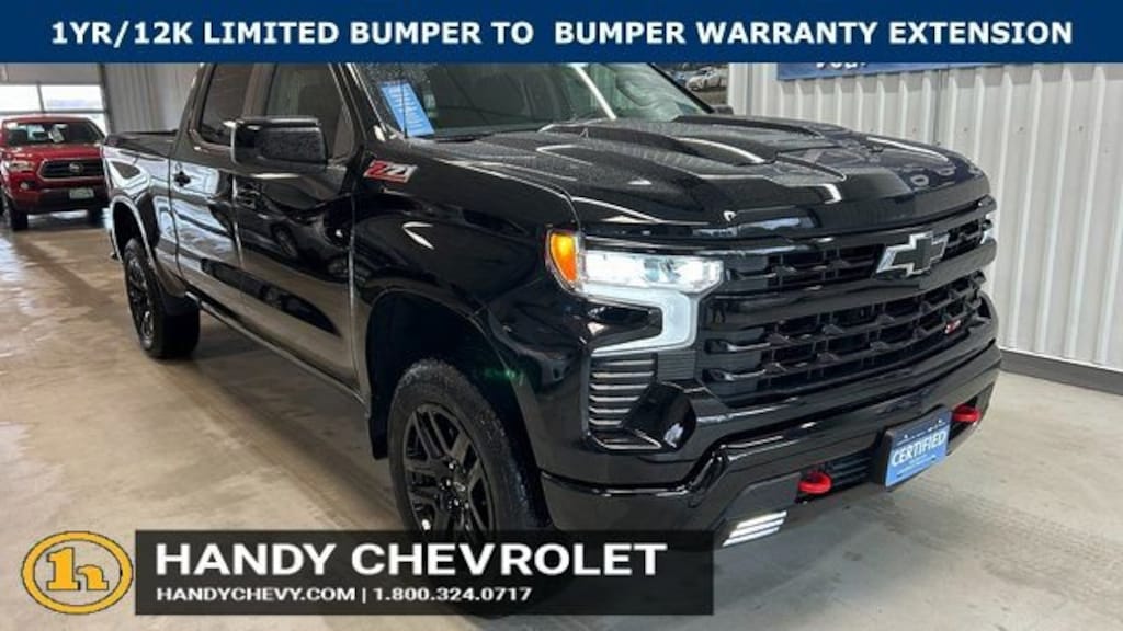 Handy Chevrolet is proud to present you with another True Market Priced Pre-Owned Vehicle. Transparent Pricing Of $ 52998 !! This 2024 Chevrolet Silverado 1500 LT Trail Boss Chevrolet Certified Pre-Owned is loaded with the following Factory Options: 10-Speed Automatic, 4WD, and Jet Black Cloth Convenience Package (10-Way Power Driver Seat w/Lumbar, 120-Volt Bed Mounted Power Outlet, 120-Volt Interior Power Outlet, Dual Rear USB Ports (Charge Only), Dual-Zone Automatic Climate Control, Electric Rear-Window Defogger, Heated Driver & Front Outboard Passenger Seats, Heated Steering Wheel, Keyless Open & Start, Remote Vehicle Starter System, Theft Deterrent System (Unauthorized Entry), and Wrapped Steering Wheel), Suspension Package (Heavy-Duty Air Filter and Hill Descent Control), Trailering Package (Hitch Guidance), Chevrolet Certified Pre-Owned Certified, 10-Speed Automatic, 4WD, Jet Black Cloth, 12.3 Multicolor Reconfigurable Digital Display, 220 Amp Alternator, 3.42 Rear Axle Ratio, 4-Wheel Disc Brakes, 40/20/40 Front Split-Bench Seat, 6 Speakers, 6-Speaker Audio System, ABS brakes, Air Conditioning, All-Weather Floor Liner (LPO) (AAK), Alloy wheels, AM/FM radio: SiriusXM with 360L, Auto High-beam Headlights, Auto-Locking Rear Differential, Automatic Emergency Braking, Automatic temperature control, Bluetooth® For Phone, Brake assist, Chevrolet Connected Access Capable, Cloth Seat Trim, Color-Keyed Carpeting Floor Covering, Compass, Deep-Tinted Glass, Delay-off headlights, Driver door bin, Driver vanity mirror, Dual front impact airbags, Dual front side impact airbags, Electrical Steering Column Lock, Electronic Cruise Control, Electronic Stability Control, EZ Lift Power Lock & Release Tailgate, Following Distance Indicator, Forward Collision Alert, Front anti-roll bar, Front Center Armrest w/Storage, Front dual zone A/C, Front fog lights, Front LED Fog Lamps, Front Pedestrian Braking, Front reading lights, Front wheel independent suspension, Fully automatic headlights, HD Rear Vision Camera, Heated door mirrors, Heated front seats, Heated Power-Adjustable Outside Mirrors, Heated steering wheel, High Gloss Black Mirror Caps, Illuminated entry, Inside Rear-View Mirror w/Tilt, IntelliBeam Automatic High Beam On/Off, Lane Keep Assist w/Lan
