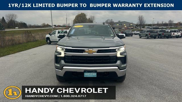Handy Chevrolet is proud to present you with another True Market Priced Pre-Owned Vehicle. Transparent Pricing Of $ 41744 !! This 2025 Chevrolet Silverado 1500 LT Chevrolet Certified Pre-Owned is loaded with the following Factory Options: 8-Speed Automatic, 4WD, and Black Cloth Convenience Package (10-Way Power Driver Seat w/Lumbar, 120-Volt Bed Mounted Power Outlet, 120-Volt Interior Power Outlet, Dual Rear USB Ports (Charge Only), Dual-Zone Automatic Climate Control, Heated Driver & Front Outboard Passenger Seats, Heated Steering Wheel, Keyless Open & Start, LED Cargo Area Lighting, Manual Tilt/Telescoping Steering Column, and Wrapped Steering Wheel), High Capacity Suspension Package, Standard Suspension Package, Trailering Package (Hitch Guidance), Chevrolet Certified Pre-Owned Certified, 8-Speed Automatic, 4WD, Black Cloth, 12.3 Multicolor Reconfigurable Digital Display, 3.42 Rear Axle Ratio, 4-Wheel Disc Brakes, 40/20/40 Front Split-Bench Seat, 6 Speakers, 6-Speaker Audio System, ABS brakes, Air Conditioning, All-Star Edition, Alloy wheels, AM/FM radio: SiriusXM with 360L, Apple CarPlay/Android Auto, Auto High-beam Headlights, Auto-Locking Rear Differential, Automatic Emergency Braking, Automatic temperature control, Bluetooth® For Phone, Brake assist, Bumpers: chrome, Chrome Mirror Caps, Cloth Seat Trim, Color-Keyed Carpeting Floor Covering, Compass, Deep-Tinted Glass, Delay-off headlights, Driver door bin, Driver vanity mirror, Dual front impact airbags, Dual front side impact airbags, Electric Rear-Window Defogger, Electronic Cruise Control, Electronic Stability Control, Emergency communication system: OnStar, Following Distance Indicator, Forward Collision Alert, Front anti-roll bar, Front Center Armrest w/Storage, Front dual zone A/C, Front Frame-Mounted Black Recovery Hooks, Front License Plate Kit, Front Pedestrian Braking, Front reading lights, Front wheel independent suspension, Fully automatic headlights, HD Rear Vision Camera, Heated door mirrors, Heated front seats, Heated steering wheel, Illuminated entry, Integrated Trailer Brake Controller, IntelliBeam Automatic High Beam On/Off, Lane Keep Assist w/Lane Departure Warning, Low tire pressure warning, Occupant sensing airbag, OnStar Services Capable, Outside temperature display, O