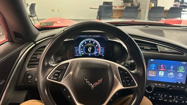 Handy Chevrolet is proud to present you with another True Market Priced Pre-Owned Vehicle. Transparent Pricing Of $ 43998 !! This 2014 Chevrolet Corvette Stingray 2LT is loaded with the following Factory Options: Battery Protection Package, Memory Package, Preferred Equipment Group 2LT (2LT Interior Trim, Auto-Dimming Inside Frameless Rearview Mirror, Body-Color Outside Heated Power-Adjustable Mirrors, Cargo Net, Head-Up Display, Heated & Vented Driver & Passenger Seats, Luggage Shade, Power Lumbar/Bolster Seat Adjusters, Radio: Chevrolet MyLink AM/FM Stereo, Theft Deterrent System, and Universal Home Remote), 18 x 8.5 Fr & 19 x 10 Rr 5-Spoke Wheels, 18 x 8.5 Fr & 19 x 10 Rr Chrome Alum. Wheels, 4-Wheel Disc Brakes, 8-Way Driver & Passenger Seat Adjusters, 9 Speakers, ABS brakes, Air Conditioning, Alloy wheels, AM/FM radio: SiriusXM, Automatic temperature control, Bose Premium 9-Speaker Audio System Feature, Bumpers: body-color, Cargo Shade w/Crossed Flag Logo (LPO), Compass, Delay-off headlights, Driver door bin, Driver vanity mirror, Dual front impact airbags, Dual front side impact airbags, Electronic Stability Control, Emergency communication system: OnStar Directions & Connections, Exterior Parking Camera Rear, Four wheel independent suspension, Front anti-roll bar, Front Bucket Seats, Front Center Armrest, Front dual zone A/C, Front License Plate Bracket, Front reading lights, Fully automatic headlights, GT Bucket Seats, Heated door mirrors, High-Intensity Discharge Headlights, Illuminated entry, Leather Shift Knob, Leather steering wheel, Low tire pressure warning, Mulan Perforated Leather Seating Surfaces, Navigation System, Occupant sensing airbag, Outside temperature display, Painted Body-Color Carbon Fiber Removable Roof Panel, Panic alarm, Passenger door bin, Passenger vanity mirror, Power door mirrors, Power driver seat, Power passenger seat, Power steering, Power windows, Premium audio system: Chevrolet MyLink, Radio data system, Rear anti-roll bar, Rear window defroster, Red Painted Calipers, Remote keyless entry, SiriusXM Satellite Radio, Speed control, Speed-sensing steering, Spoiler, Sport steering wheel, Steering wheel mounted audio controls, Tachometer, Telescoping steering wheel, Tilt steering wheel, Traction control, Trip computer, Variably intermittent wipers, and Voltmeter!!