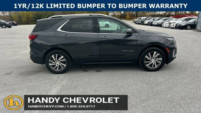 Handy Chevrolet is proud to present you with another True Market Priced Pre-Owned Vehicle. Transparent Pricing Of $ 25498 !! This 2022 Chevrolet Equinox Premier Chevrolet Certified Pre-Owned is loaded with the following Factory Options: AWD Confidence & Convenience II Package, Driver Confidence III Package (Adaptive Cruise Control, Automatic Front & Rear Parking Assist, and HD Surround Vision), Driver Convenience II Package (8-Way Power Front Passenger Seat Adjuster, Heated Rear Outboard Seating Positions, Ventilated Driver Seat, and Ventilated Front Passenger Seat), Infotainment II Package (Bose Premium 7-Speaker Audio System Feature and Radio: Chevrolet Infotainment 3 Plus System w/Navi), Preferred Equipment Group 1LZ, Chevrolet Certified Pre-Owned Certified, AWD, 18 Aluminum Wheels, 2 Rear USB Charging-Only Ports, 2 USB Data Ports, 2 USB Data Ports w/SD Card Reader, 2-Way Power Driver Lumbar Control Seat Adjuster, 3.87 Final Drive Axle Ratio, 4-Wheel Disc Brakes, 6 Speaker Audio System Feature, 6 Speakers, 8-Way Power Driver Seat Adjuster, ABS brakes, Air Conditioning, Alloy wheels, AM/FM radio: SiriusXM, Auto High-beam Headlights, Auto-dimming door mirrors, Auto-dimming Rear-View mirror, Automatic temperature control, Bluetooth® For Phone, Brake assist, Bumpers: body-color, Compass, Delay-off headlights, Driver door bin, Driver vanity mirror, Dual front impact airbags, Dual front side impact airbags, Electronic Stability Control, Emergency communication system: OnStar and Chevrolet connected services capable, Four wheel independent suspension, Front anti-roll bar, Front Bucket Seats, Front Center Armrest, Front dual zone A/C, Front fog lights, Front Passenger 4-Way Manual Seat Adjuster, Front reading lights, Fully automatic headlights, Garage door transmitter, Heated door mirrors, Heated Driver & Front Passenger Seats, Heated front seats, Heated steering wheel, Illuminated entry, Low tire pressure warning, Memory seat, Occupant sensing airbag, Outside temperature display, Overhead airbag, Overhead console, Panic alarm, Passenger door bin, Passenger vanity mirror, Perforated Leather-Appointed Seat Trim, Power door mirrors, Power driver seat, Power Liftgate, Power steering, Power Sunroof, Power windows, Premium audio system: Chevrolet Infotainment 3 Plus, Radio data system, Radio: Chevrolet Infotainment 3 Plus System, Rear anti-roll bar, Rear reading lights, Rear seat center armrest, Rear window defroster, Rear window wiper, Remote keyless entry, Roof rack: rails only, Security system, SiriusXM Radio, Speed control, Speed-sensing steering, Split folding rear seat, Spoiler, Steering wheel mounted audio controls, Tachometer, Telescoping steering wheel, Tilt steering wheel, Traction control, Trip computer, Turn signal indicator mirrors, Variably intermittent wipers, and Wireless Apple CarPlay/Wireless Android Auto!!