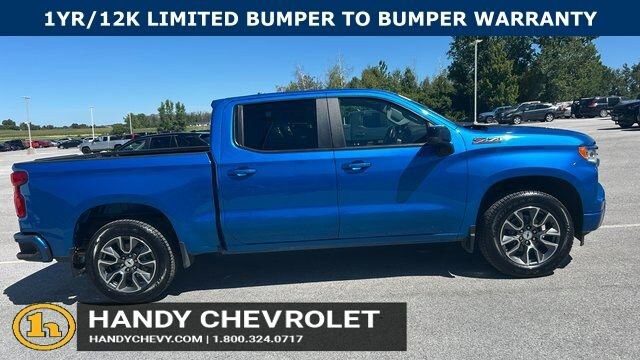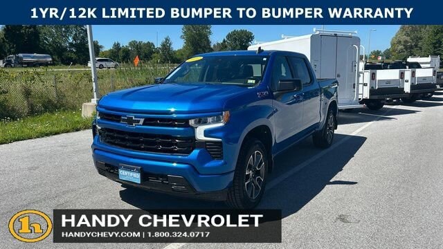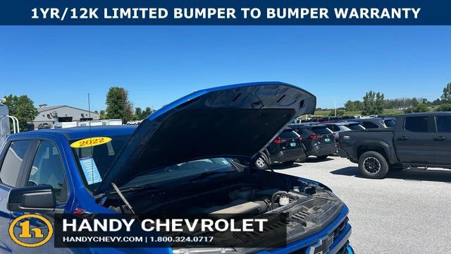 Handy Chevrolet is proud to present you with another True Market Priced Pre-Owned Vehicle. Transparent Pricing Of $ 41998 !! This 2022 Chevrolet Silverado 1500 RST Chevrolet Certified Pre-Owned is loaded with the following Factory Options: 10-Speed Automatic, 4WD, and Black Cloth All Star Edition Plus (Wheels: 20 x 9 Painted Aluminum), Convenience Package (10-Way Power Driver Seat w/Lumbar, 120-Volt Bed Mounted Power Outlet, 120-Volt Instrument Panel Power Outlet, Dual Rear USB Ports (Charge Only), Dual-Zone Automatic Climate Control, Electric Rear-Window Defogger, Heated Driver & Front Outboard Passenger Seats, Heated Steering Wheel, Keyless Open & Start, Leather Wrapped Steering Wheel, Manual Tilt/Telescoping Steering Column, Remote Vehicle Starter System, and Theft Deterrent System (Unauthorized Entry)), Convenience Package II (Hitch Guidance w/Hitch View, Integrated Trailer Brake Controller, Power Sliding Rear Window w/Rear Defogger, Premium Bose 7-Speaker Sound System, Trailering App, and Universal Home Remote), Dark Essentials Package (LPO) (Black Name Plates (LPO)), Preferred Equipment Group 1SP (12.3 Multicolor Reconfigurable Digital Display, 6-Speaker Audio System, All-Star Edition, Auto-Locking Rear Differential, Bluetooth® For Phone, Chevrolet Connected Access Capable, Color-Keyed Carpeting Floor Covering, Compass, Deep-Tinted Glass, Electrical Steering Column Lock, Electronic Cruise Control, EZ Lift Power Lock & Release Tailgate, Front Frame-Mounted Black Recovery Hooks, Front LED Fog Lamps, Front Rubberized Vinyl Floor Mats, HD Rear Vision Camera, Heated Power-Adjustable Outside Mirrors, High Gloss Black Mirror Caps, Inside Rear-View Mirror w/Tilt, LED Cargo Area Lighting, OnStar & Chevrolet Connected Services Capable, Power Front Windows w/Driver Express Up/Down, Power Front Windows w/Passenger Express Down, Power Rear Windows w/Express Down, Rear 60/40 Folding Bench Seat (Folds Up), Rear Rubberized-Vinyl Floor Mats, SiriusXM w/360L, Standard Tailgate, Steering Wheel Audio Controls, Wi-Fi Hot Spot Capable, and Wireless Phone Projection), Standard Suspension Package, Trailering Package (Hitch Guidance), Z71 Off-Road Package (Dual Exhaust w/Polished Outlets, Heavy-Duty Air Filter, Hill Descent Control, and Off-Road Suspension), Chevrolet Certified Pre-Owned Certified, 10-Speed Automatic, 4WD, Black Cloth, 2 USB Data Ports, 220 Amp Alternator, 3.23 Rear Axle Ratio, 4-Wheel Disc Brakes, 40/20/40 Front Split-Bench Seat, 6 Speakers, ABS brakes, Air Conditioning, Alloy wheels, AM/FM radio: SiriusXM with 360L, Apple CarPlay/Android Auto, Auto High-beam Headlights, Automatic Emergency Braking, Automatic temperature control, Brake assist, Bumpers: body-color, Cloth Seat Trim, Delay-off headlights, Driver door bin, Driver vanity mirror, Dual front impact airbags, Dual front side impact airbags, Electronic Stability Control, El