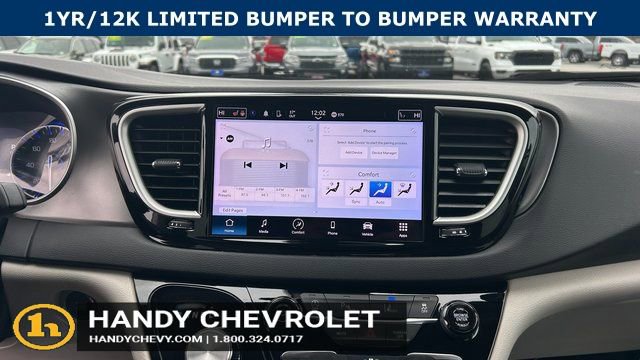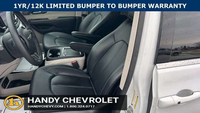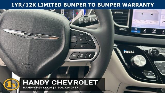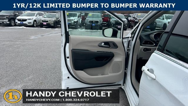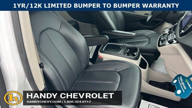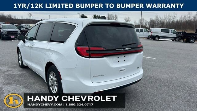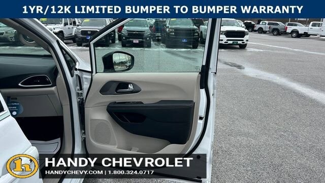 Handy Chevrolet is proud to present you with another True Market Priced Pre-Owned Vehicle. Transparent Pricing Of $ 28451 !! This 2024 Chrysler Pacifica Touring L is loaded with the following Factory Options: Quick Order Package 27L, 10.1 Touchscreen Display, 17 x 7.0 Aluminum Wheels, 3.25 Axle Ratio, 3rd row seats: split-bench, 4-Wheel Disc Brakes, 6 Speakers, ABS brakes, Air Conditioning, Alloy wheels, AM/FM radio: SiriusXM, Apple CarPlay, Apple CarPlay/Android Auto, Automatic temperature control, Black Seats, Brake assist, Bumpers: body-color, Caprice Leatherette Bucket Seats, Compass, Delay-off headlights, Disassociated Touchscreen Display, Driver door bin, Driver vanity mirror, Driver's Seat Mounted Armrest, Dual front impact airbags, Dual front side impact airbags, Electronic Stability Control, Four wheel independent suspension, Front anti-roll bar, Front Bucket Seats, Front dual zone A/C, Front fog lights, Front reading lights, Fully automatic headlights, Google Android Auto, GPS Antenna Input, Heated door mirrors, Heated front seats, Heated steering wheel, Illuminated entry, Integrated Active Noise Cancellation, Integrated Center Stack Radio, Knee airbag, Low tire pressure warning, Manufacturer's Statement of Origin, Memory seat, Occupant sensing airbag, Outside temperature display, Overhead airbag, Overhead console, Panic alarm, ParkView Rear Back-Up Camera, Passenger door bin, Passenger seat mounted armrest, Passenger vanity mirror, Power door mirrors, Power driver seat, Power Liftgate, Power steering, Power windows, Radio data system, Radio: Uconnect 5 w/10.1 Display, Rain sensing wipers, Rear air conditioning, Rear reading lights, Rear window defroster, Rear window wiper, Reclining 3rd row seat, Remote keyless entry, Security system, Speed control, Split folding rear seat, Spoiler, Steering wheel mounted audio controls, Tachometer, Telescoping steering wheel, Tilt steering wheel, Touring Suspension, Traction control, Trip computer, Turn signal indicator mirrors, USB Host Flip, Variably intermittent wipers, and Voltmeter!!