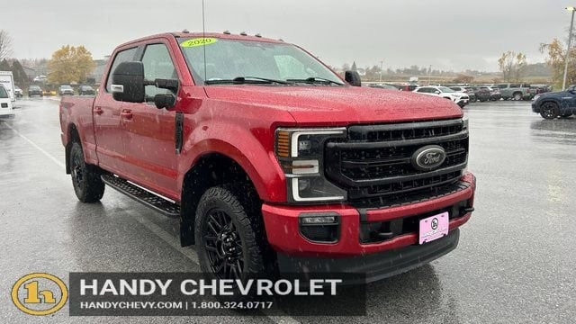 Handy Chevrolet is proud to present you with another True Market Priced Pre-Owned Vehicle. Transparent Pricing Of $ 41835 !! This 2020 Ford F-350SD Lariat is loaded with the following Factory Options: 4WD FX4 Off-Road Package (Hill Descent Control, Off-Road Specifically Tuned Shock Absorbers, and Unique FX4 Off-Road Box Decal), GVWR: 11,300 lb Payload Package, Lariat Sport Appearance Package (6 Ebony Black Angular Running Boards, Black Out Surrounds LED Only Headlamps, Body-Color Front & Rear Bumpers, Ebony Black Painted Front Grille Bars, Ebony Black Painted Mirror Caps, Rear Wheel Well Liners (Pre-Installed), and Tough Bed Spray-In Bedliner), Lariat Ultimate Package (Ambient Lighting - Fixed Color, Easy Entry®/Exit Memory Driver's Seat Feature, Intelligent Access w/Push-Button Start, LED Box Lighting, Memory Power-Adjustable Pedals, Power Heated/Ventilated Driver Seat w/Memory, Power Heated/Ventilated Passenger Seat, Power Telescoping/Tilt Steering Wheel/Column, PowerScope Trailer Tow Mirrors w/Memory, Remote Start System, Remote Tailgate Release, Tailgate Step & Handle, and Voice-Activated Touchscreen Navigation System), Order Code 618A, Snow Plow Prep Package, 4WD, 10 Speakers, 110V/400W Outlet, 397 Amp Alternators, 4-Wheel Disc Brakes, ABS brakes, Adjustable pedals, Air Conditioning, Alloy wheels, AM/FM radio: SiriusXM, Auto High-beam Headlights, Auto-dimming Rear-View mirror, Automatic temperature control, Brake assist, Bumpers: chrome, Compass, Delay-off headlights, Driver door bin, Driver vanity mirror, Dual 78 AH Battery, Dual front impact airbags, Dual front side impact airbags, Electronic Stability Control, Emergency communication system: SYNC 3 911 Assist, Exterior Parking Camera Rear, Flow-Through Console, Front anti-roll bar, Front Bucket Seats, Front Center Armrest, Front dual zone A/C, Front fog lights, Front Leather Seating Surfaces 40/Console/40, Front reading lights, Fully automatic headlights, Heated door mirrors, Illuminated entry, Leather steering wheel, LED Roof Clearance Lights, Low tire pressure warning, Outside temperature display, Overhead airbag, Overhead console, Panic alarm, Passenger door bin, Passenger vanity mirror, Power door mirrors, Power driver seat, Power passenger seat, Power steering, Power windows, PowerScope Trailer Tow Mirrors w/Heat, Pro Trailer Backup Assist, Radio data system, Radio: B&O System by Bang & Olufsen, Rear Parking Sensors, Rear reading lights, Rear seat center armrest, Rear step bumper, Rear window defroster, Remote keyless entry, Security system, SiriusXM Radio, Speed control, Split folding rear seat, Steering wheel mounted audio controls, SYNC 3 Communications & Entertainment System, Tachometer, Telescoping steering wheel, Tilt steering wheel, Traction control, Trip computer, Turn signal indicator mirrors, Twin Panel Power Moonroof, Ultimate Trailer Tow Camera System, Upfitter Switches (6), Variably intermittent wipers, Wheels: 18 Bright Machined Cast Aluminum, and Wheels: 20