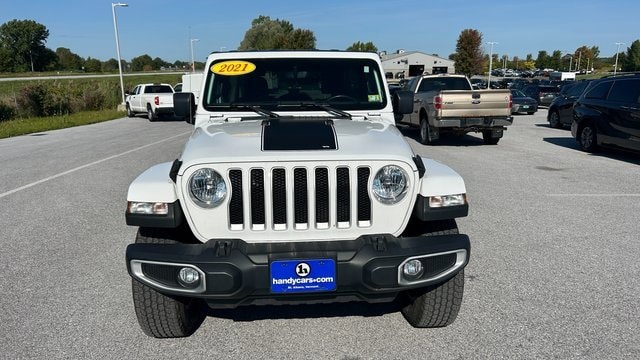 Handy Chevrolet is proud to present you with another True Market Priced Pre-Owned Vehicle. Transparent Pricing Of $ 33939 !! This 2021 Jeep Wrangler Unlimited Sahara is loaded with the following Factory Options: 8.4 Radio & Premium Audio Group (1-Year SiriusXM Guardian Trial, 4G LTE Wi-Fi Hot Spot, 5-Year SiriusXM Traffic Service, 5-Year SiriusXM Travel Link Service, 8.4 Touchscreen Display, Alpine Premium Audio System, Auto-Dimming Rear-View Mirror, Emergency/Assistance Call, For Details, Visit DriveUconnect.com, GPS Navigation, HD Radio, Radio: Uconnect 4C Nav w/8.4 Display, SiriusXM Traffic Plus, and SiriusXM Travel Link), Cold Weather Group (Heated Front Seats and Heated Steering Wheel), Dual Top Group (Freedom Panel Storage Bag, Premium Black Sunrider Soft Top w/Dual Top Group, Rear Window Defroster, and Rear Window Wiper/Washer), Quick Order Package 22G, 3.45 Rear Axle Ratio, 4-Wheel Disc Brakes, 8 Speakers, ABS brakes, Air Conditioning, Alloy wheels, AM/FM radio: SiriusXM, Apple CarPlay, Apple CarPlay/Android Auto, Automatic temperature control, Aux Battery, Brake assist, Cloth Low-Back Bucket Seats, Compass, Delay-off headlights, Driver door bin, Driver vanity mirror, Dual front impact airbags, Dual front side impact airbags, Electronic Stability Control, Front anti-roll bar, Front Bucket Seats, Front Center Armrest w/Storage, Front dual zone A/C, Front fog lights, Front reading lights, Fully automatic headlights, Garage door transmitter, Google Android Auto, GPS Antenna Input, Heated door mirrors, Heavy Duty Suspension w/Gas Shocks, Illuminated entry, Integrated roll-over protection, Integrated Voice Command w/Bluetooth, Leather steering wheel, Low tire pressure warning, Non-Lock Fuel Cap w/o Discriminator, Occupant sensing airbag, Outside temperature display, Panic alarm, ParkView Rear Back-Up Camera, Passenger door bin, Passenger vanity mirror, Power door mirrors, Power steering, Power windows, Radio data system, Radio: Uconnect 4 w/7 Display, Rear anti-roll bar, Rear reading lights, Remote keyless entry, Remote Proximity Keyless Entry, Remote Start System, Security system, Speed control, Split folding rear seat, Steering wheel mounted audio controls, Stop-Start Dual Battery System, Tachometer, Telescoping steering wheel, Tilt steering wheel, Traction control, Trip computer, Variably intermittent wipers, Voltmeter, Wheels: 18 x 7.5 Polished w/Gray Spokes, and Wheels: 18 x 7.5 Tech Gray Machined Face!!