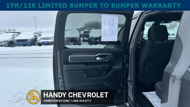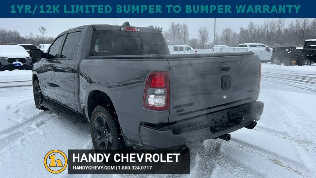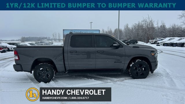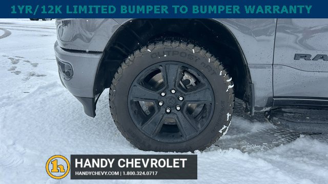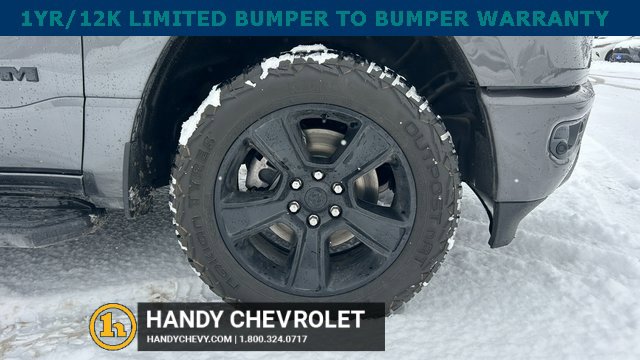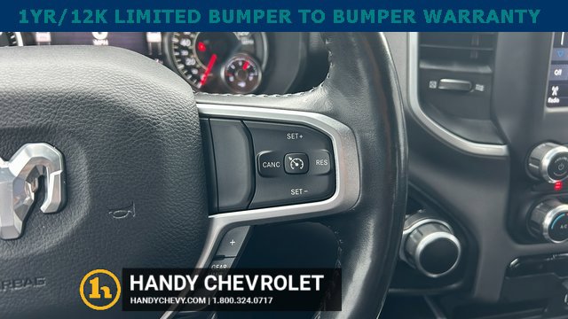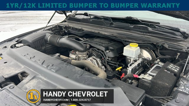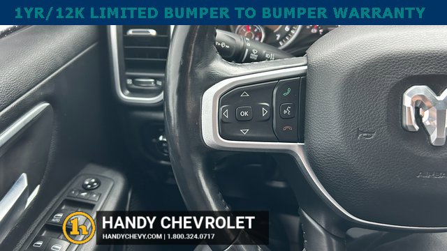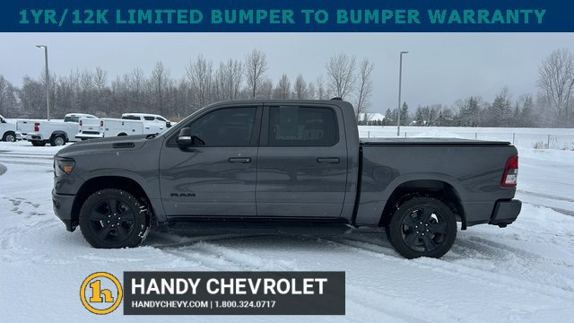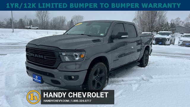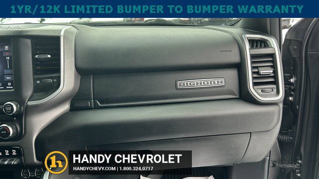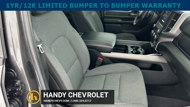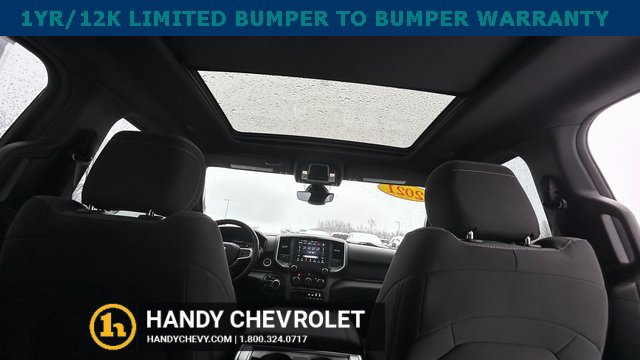 Handy Chevrolet is proud to present you with another True Market Priced Pre-Owned Vehicle. Transparent Pricing Of $ 31998 !! This 2021 Ram 1500 Big Horn/Lone Star is loaded with the following Factory Options: Bed Utility Group (MOPAR Spray In Bedliner and Pick-Up Box Lighting), Big Horn Level 2 Equipment Group (115V Auxiliary Power Outlet, 400W Inverter, and ParkSense Front/Rear Park Assist w/Stop), Night Edition (3 Rear Seat Head Restraints, 4 Way Front Headrests, Anti-Spin Differential Rear Axle, Deluxe Cloth Bucket Seats, Front Seat Back Map Pockets, Rear 60/40 Folding Seat, and Wheels: 20 x 9.0 Premium Paint/Polished), Quick Order Package 25Z Big Horn, 3.21 Rear Axle Ratio, 4-Wheel Disc Brakes, 40/20/40 Split Bench Seat, 48V Belt Starter Generator, 6 Speakers, ABS brakes, Air Conditioning, Alloy wheels, AM/FM radio, Black Exterior Mirrors, Brake assist, Bumpers: chrome, Cloth Bench Seat, Compass, Delay-off headlights, Dome Dual LED Reading Lamp, Driver door bin, Dual front impact airbags, Dual front side impact airbags, Dual-Pane Panoramic Sunroof, Electronic Stability Control, Front anti-roll bar, Front Center Armrest w/Storage, Front fog lights, Front License Plate Bracket, Front reading lights, Front wheel independent suspension, Fully automatic headlights, GPS Antenna Input, Heated door mirrors, Illuminated entry, Integrated Voice Command w/Bluetooth, Leather steering wheel, Low tire pressure warning, Manufacturer's Statement of Origin, Mopar Black Tubular Side Steps, MOPAR Front & Rear Rubber Floor Mats, Occupant sensing airbag, Outside temperature display, Overhead airbag, Overhead console, Overhead LED Lamps, Panic alarm, ParkView Rear Back-Up Camera, Passenger door bin, Passenger vanity mirror, Power door mirrors, Power steering, Power windows, Premium Overhead Console, Radio data system, Radio: Uconnect 3 w/5 Display, Radio: Uconnect 4 w/8.4 Display, Rear anti-roll bar, Rear seat center armrest, Rear step bumper, Rear Underseat Compartment Storage, Remote keyless entry, Remote Start System, Speed control, Split folding rear seat, Steering wheel mounted audio controls, Tachometer, Telescoping steering wheel, Tilt steering wheel, Traction control, Trip computer, Variably intermittent wipers, Voltmeter, and Wheels: 18 x 8 Cast-Aluminum Painted!!