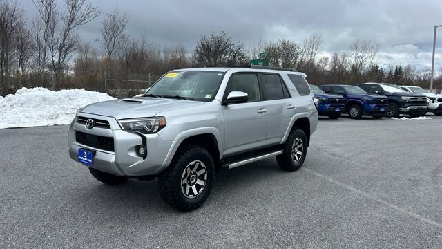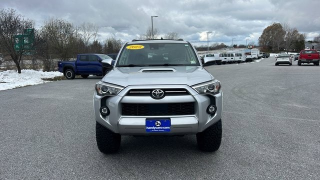 Here at HANDY CHEVROLET, it is our mission to be the automotive home of drivers in the Saint Albans, Burlington, and Franklin County area. We have been a family owned and operated dealership for 50+ years serving our community. We provide a vast selection of new and used vehicles, exceptional car care and customer service with a smile!Our staff at Handy Chevrolet of St. Albans, VT makes every effort to keep all information accurate and up to date. Contact a product specialist on our Sales team to inquire about availability. Contact us as soon as possible at 802 524 9737 to schedule the test drive of your next new or pre-owned vehicle!KEY POLICY: HANDY CHEVY PRE-OWNED VEHICLES COME STANDARD WITH ONE KEY. IF WE RECEIVED MORE THAN ONE KEY FROM THE PREVIOUS OWNER, WE INCLUDE THEM.Clean CARFAX. CARFAX One-Owner.4WD, Cloth.Silver 2023 Toyota 4Runner TRD Off-Road 4D Sport Utility 4WD 5-Speed with ECT 4.0L V6 DOHC 24VHandy Chevrolet is proud to present you with another True Market Priced Pre-Owned Vehicle. Transparent Pricing Of $ 36798 !! This 2023 Toyota 4Runner TRD Off-Road is loaded with the following Factory Options: 4WD and Cloth 4WD, Cloth, 3.727 Axle Ratio, 4-Wheel Disc Brakes, 8 Speakers, ABS brakes, Air Conditioning, Alloy wheels, AM/FM radio: SiriusXM, Anti-whiplash front head restraints, Apple CarPlay/Android Auto, Auto High-beam Headlights, Black Roof Rails, Brake assist, Bumpers: body-color, Compass, Driver door bin, Driver vanity mirror, Dual front impact airbags, Dual front side impact airbags, Electronic Stability Control, Emergency communication system: Safety Connect (1-year trial), Exterior Parking Camera Rear, Fabric Seat Trim, Front anti-roll bar, Front Bucket Seats, Front Center Armrest, Front fog lights, Front reading lights, Front wheel independent suspension, Heated door mirrors, Illuminated entry, Knee airbag, Leather Shift Knob, Low tire pressure warning, Occupant sensing airbag, Outside temperature display, Overhead airbag, Overhead console, Panic alarm, Passenger door bin, Passenger vanity mirror, Power door mirrors, Power driver seat, Power steering, Power windows, Radio: Audio Plus, Rear anti-roll bar, Rear seat center armrest, Rear window defroster, Rear window wiper, Remote keyless entry, Security system, Speed control, Speed-sensing steering, Split folding rear seat, Spoiler, Steering wheel mounted audio controls, Tachometer, Telescoping steering wheel, Tilt steering wheel, Traction control, Trip computer, Variably intermittent wipers, and Wheels: 17 Unique 7-Spoke Off-Road Alloy!!